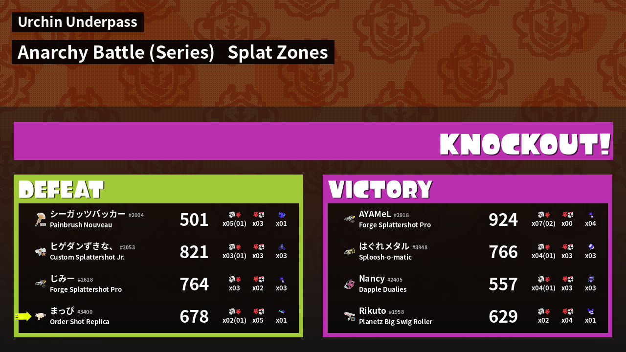 | Mode | Splat Zones - Anarchy Battle (Series) |