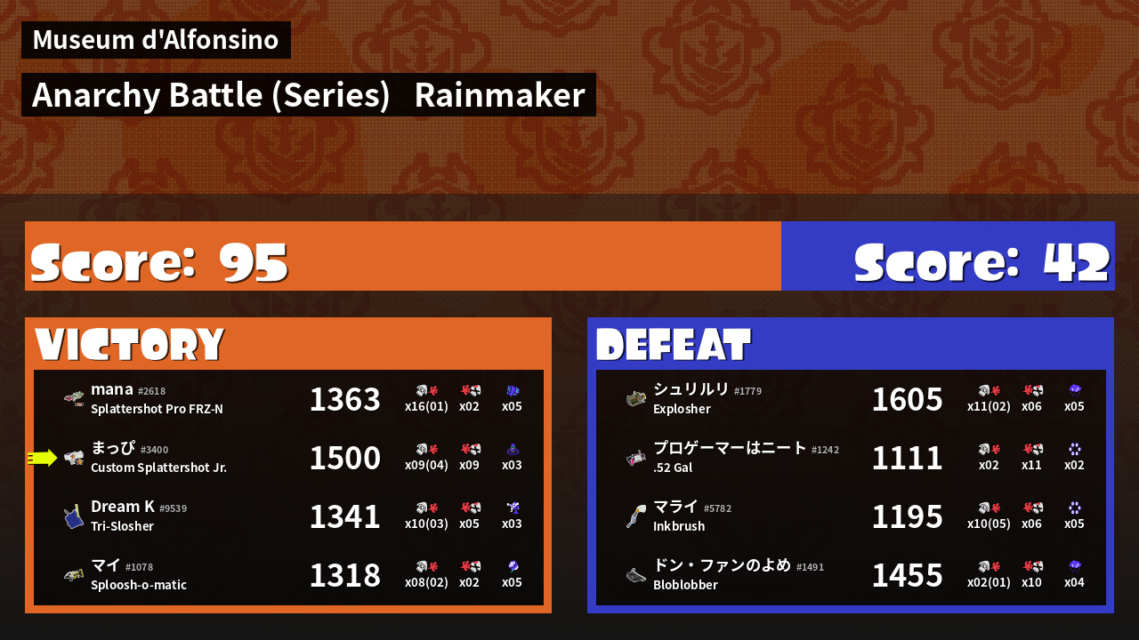 | Mode | Rainmaker - Anarchy Battle (Series) |