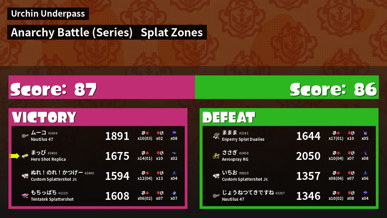| Mode | Splat Zones - Anarchy Battle (Series) |
