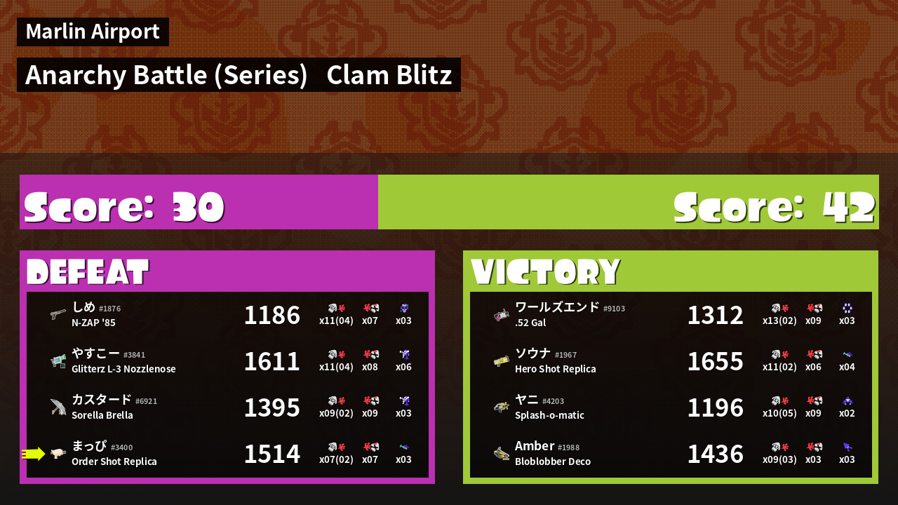 | Mode | Clam Blitz - Anarchy Battle (Series) |