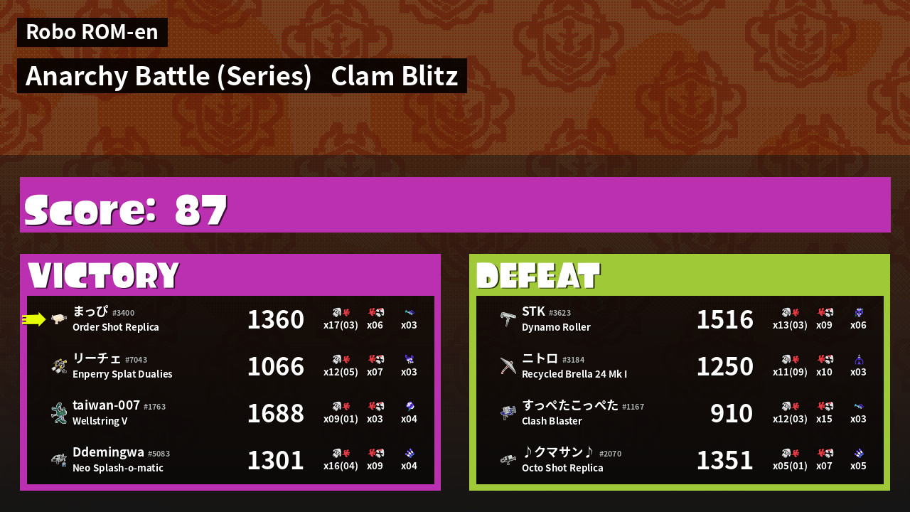 | Mode | Clam Blitz - Anarchy Battle (Series) |