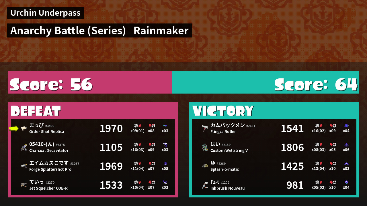 | Mode | Rainmaker - Anarchy Battle (Series) |