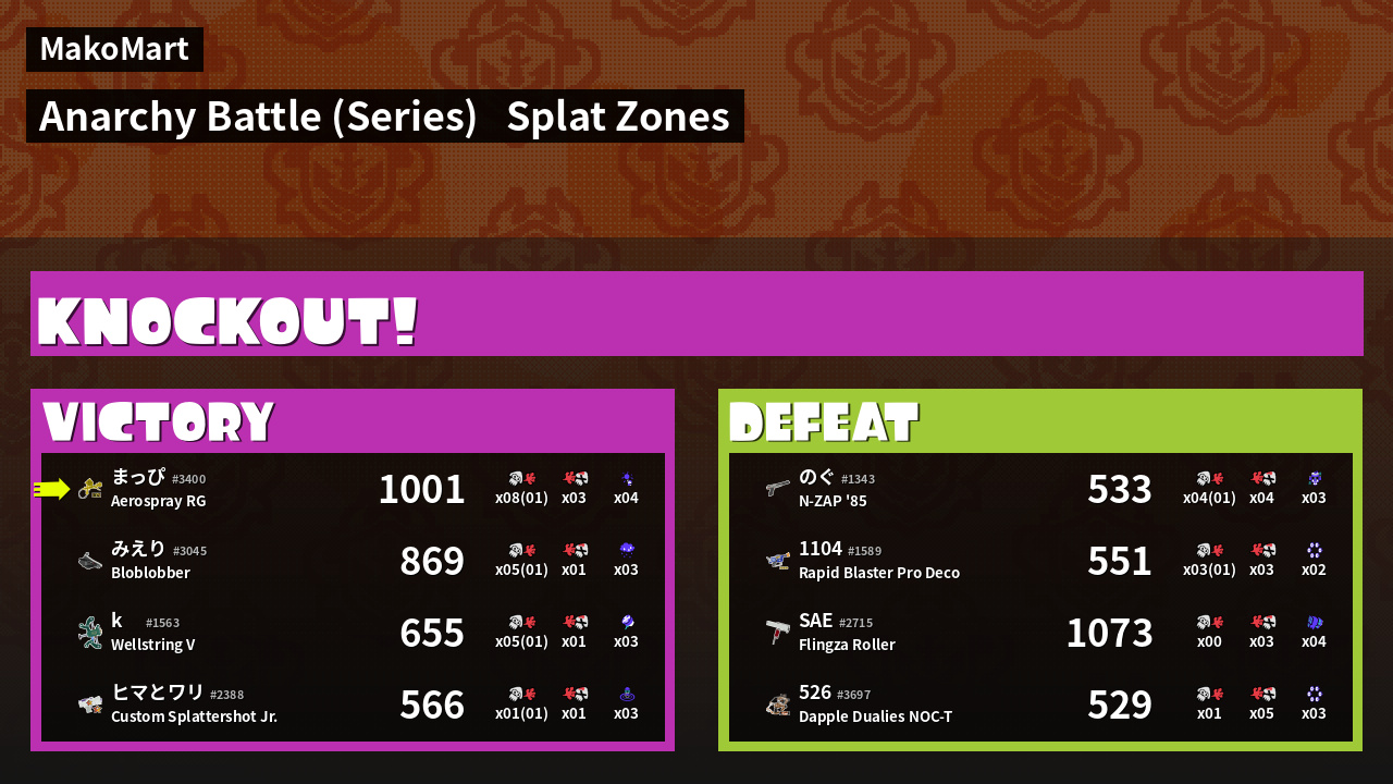 | Mode | Splat Zones - Anarchy Battle (Series) |