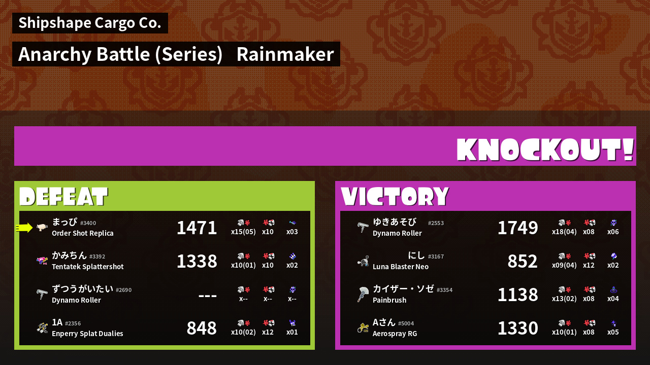 | Mode | Rainmaker - Anarchy Battle (Series) |