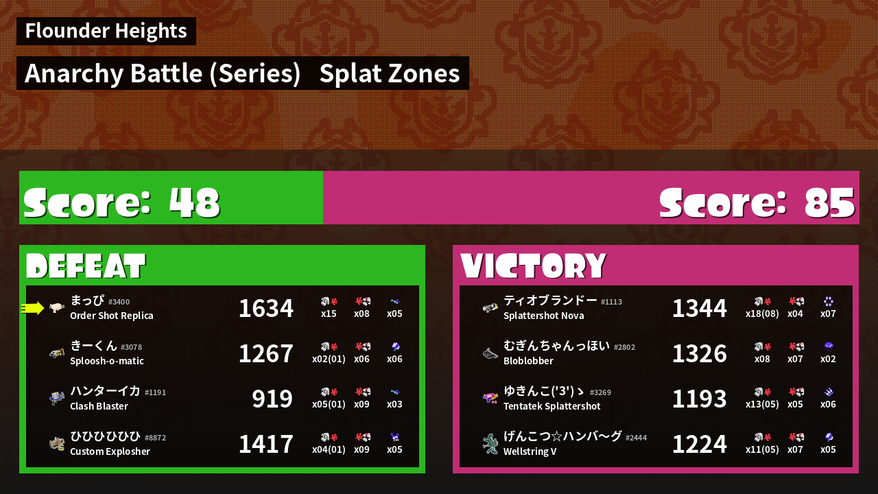 | Mode | Splat Zones - Anarchy Battle (Series) |