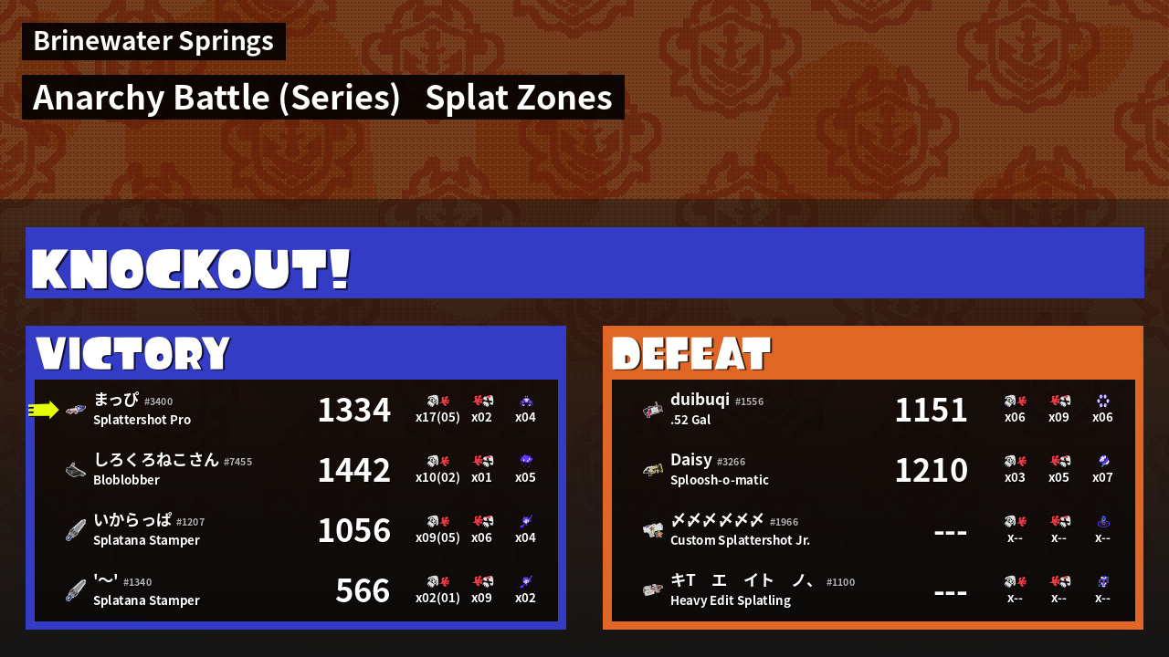 | Mode | Splat Zones - Anarchy Battle (Series) |