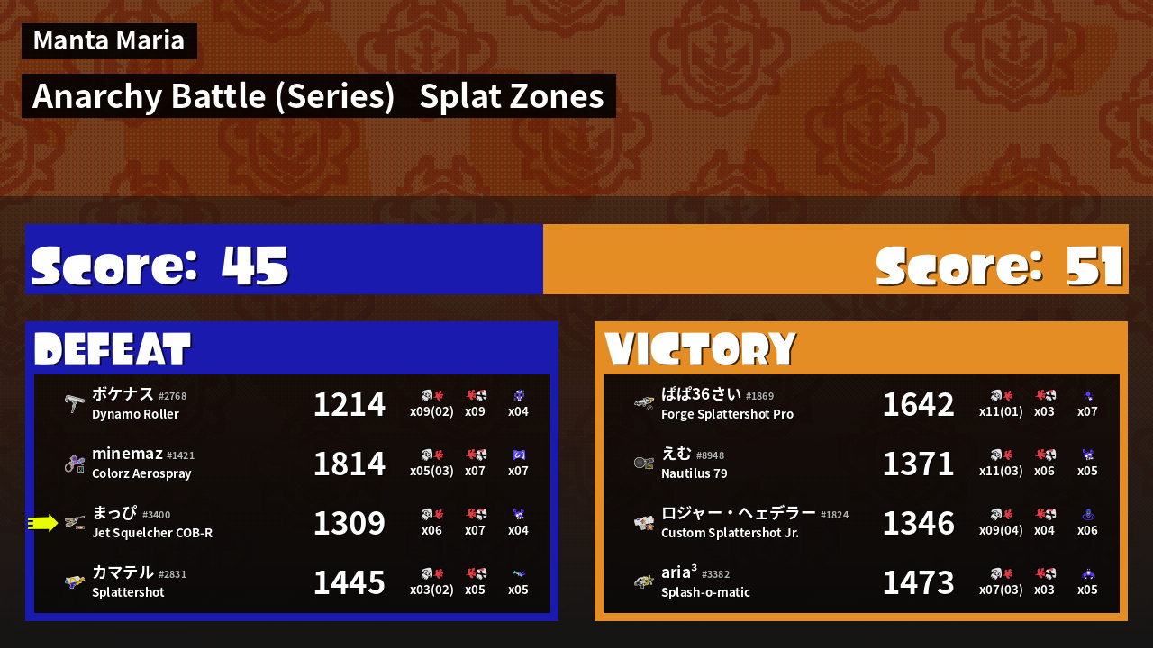 | Mode | Splat Zones - Anarchy Battle (Series) |