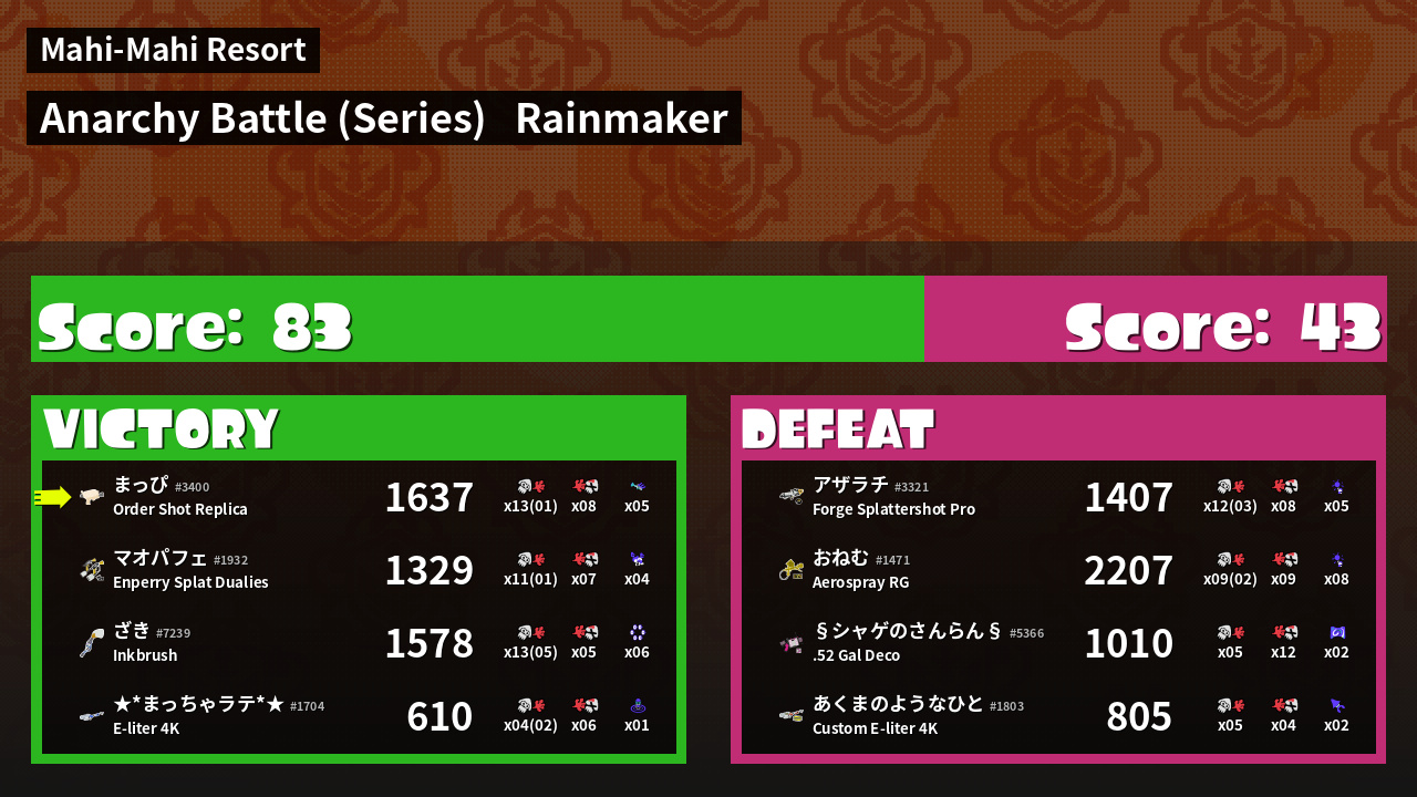 Results of まっぴ's Battle