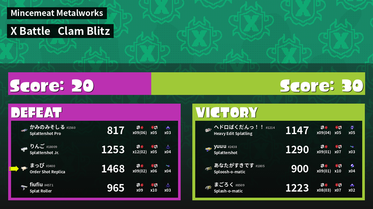 | Mode | Clam Blitz - X Battle |