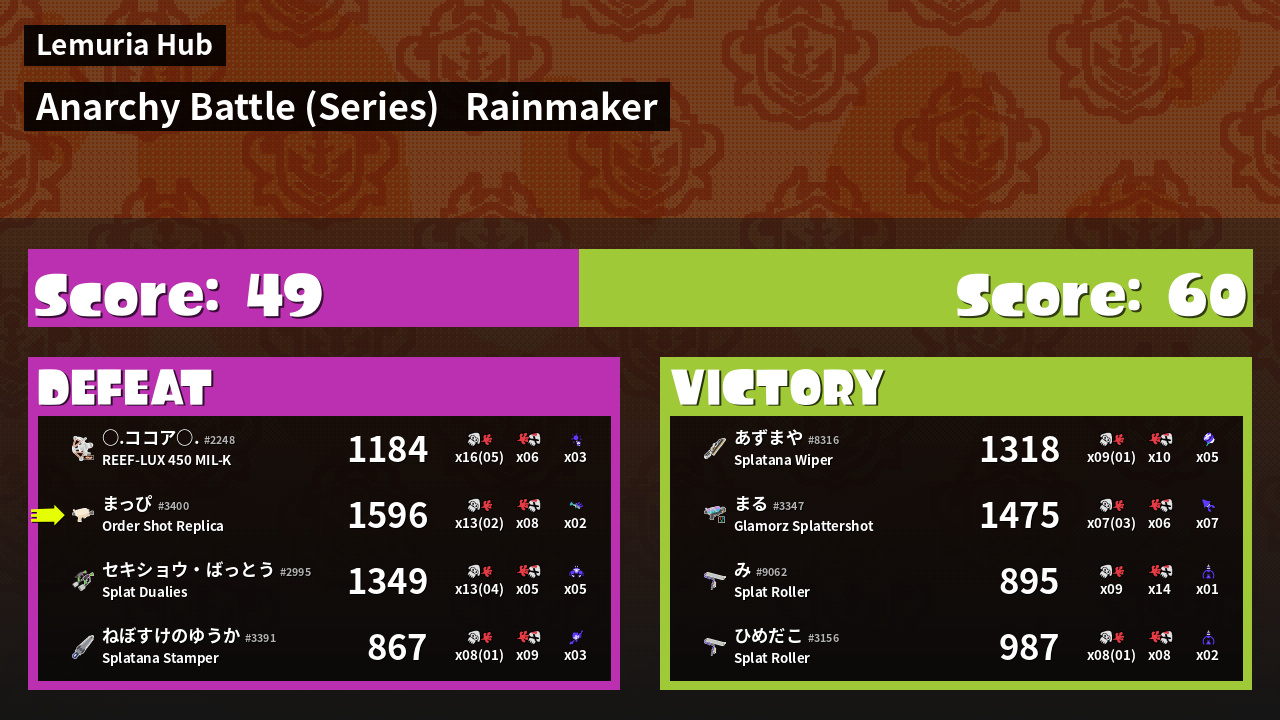 | Mode | Rainmaker - Anarchy Battle (Series) |