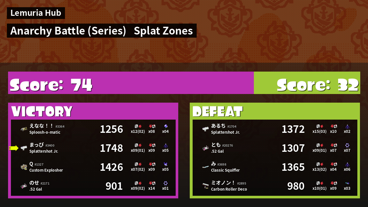 | Mode | Splat Zones - Anarchy Battle (Series) |