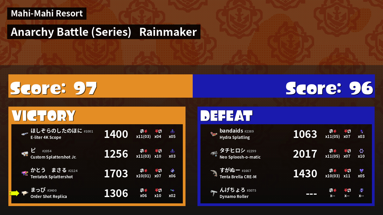 | Mode | Rainmaker - Anarchy Battle (Series) |