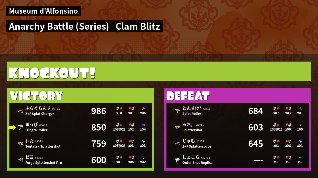 | Mode | Clam Blitz - Anarchy Battle (Series) |