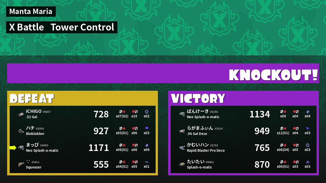 | Medals | #1 Turf Inker #1 Enemy Splatter #1 Tower Stopper |