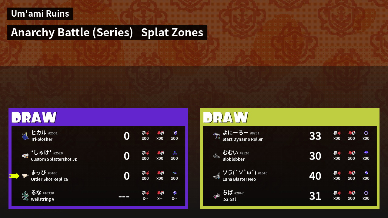 | Mode | Splat Zones - Anarchy Battle (Series) |