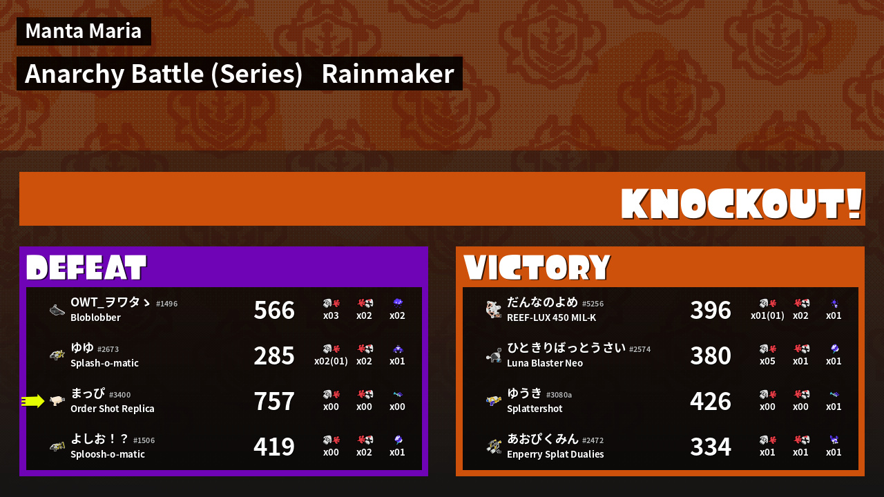 | Mode | Rainmaker - Anarchy Battle (Series) |