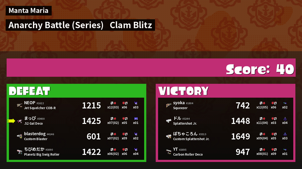 | Mode | Clam Blitz - Anarchy Battle (Series) |