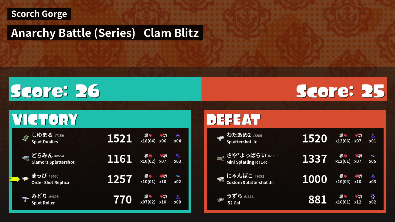 Results of まっぴ's Battle