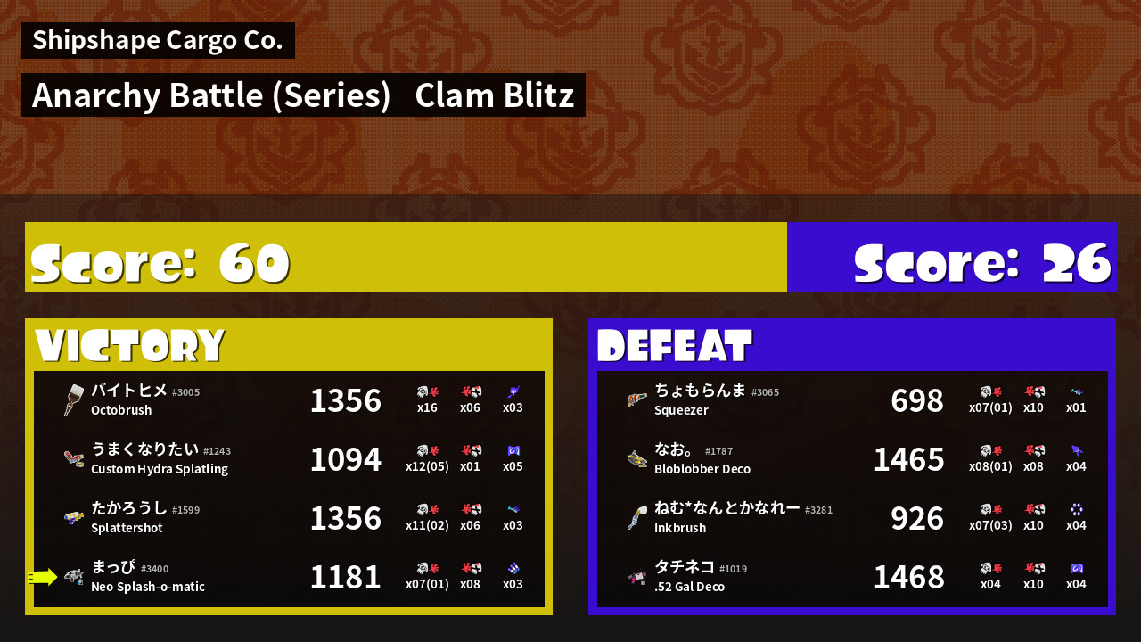 | Mode | Clam Blitz - Anarchy Battle (Series) |