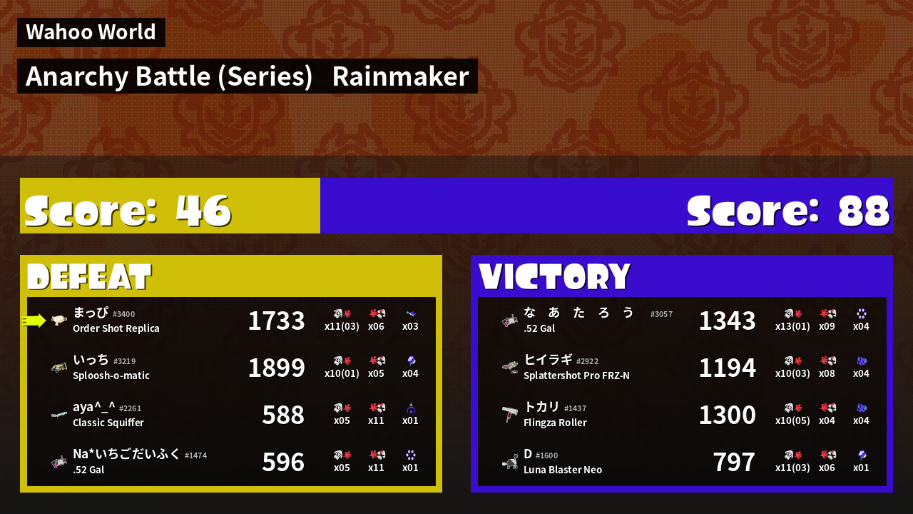 | Mode | Rainmaker - Anarchy Battle (Series) |