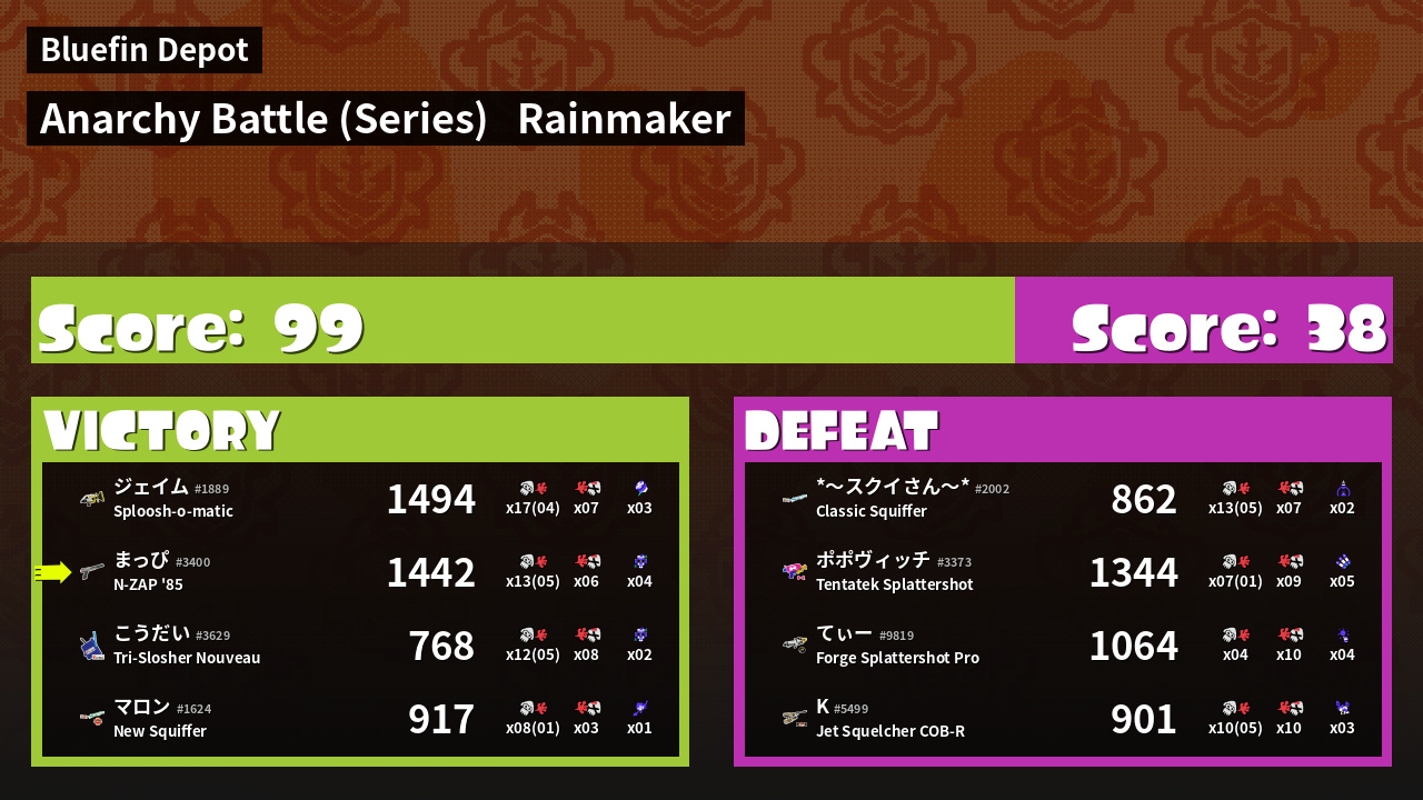 | Mode | Rainmaker - Anarchy Battle (Series) |