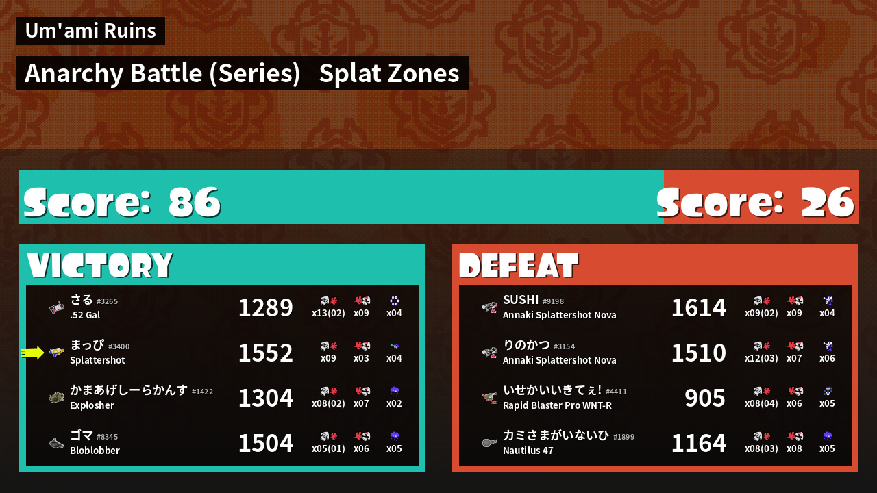 | Mode | Splat Zones - Anarchy Battle (Series) |