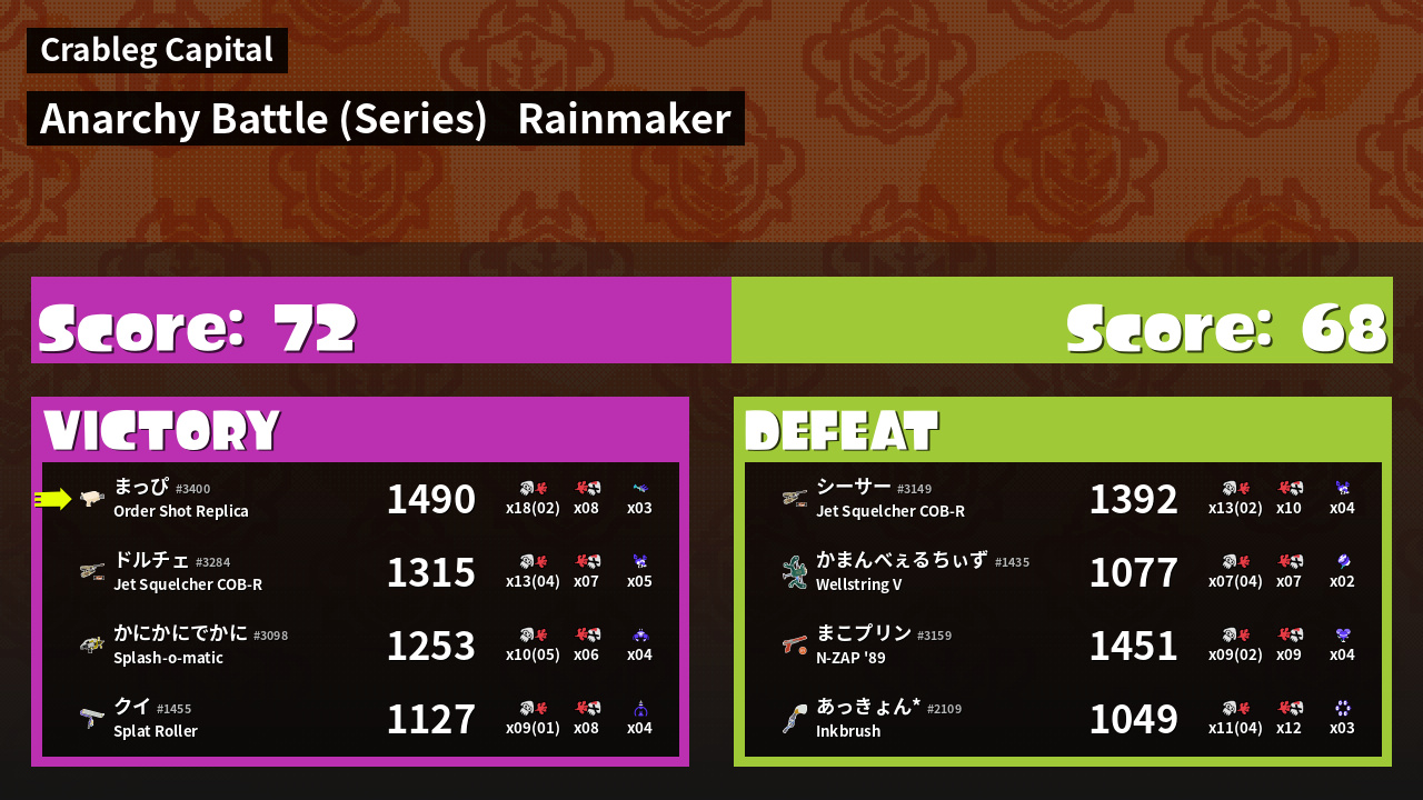 | Mode | Rainmaker - Anarchy Battle (Series) |