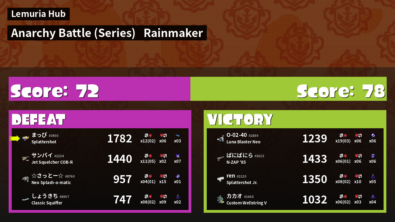 | Mode | Rainmaker - Anarchy Battle (Series) |