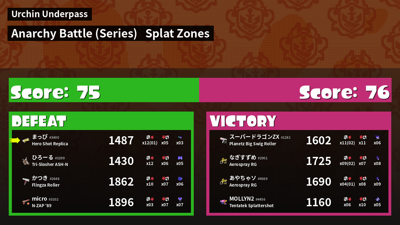 | Mode | Splat Zones - Anarchy Battle (Series) |