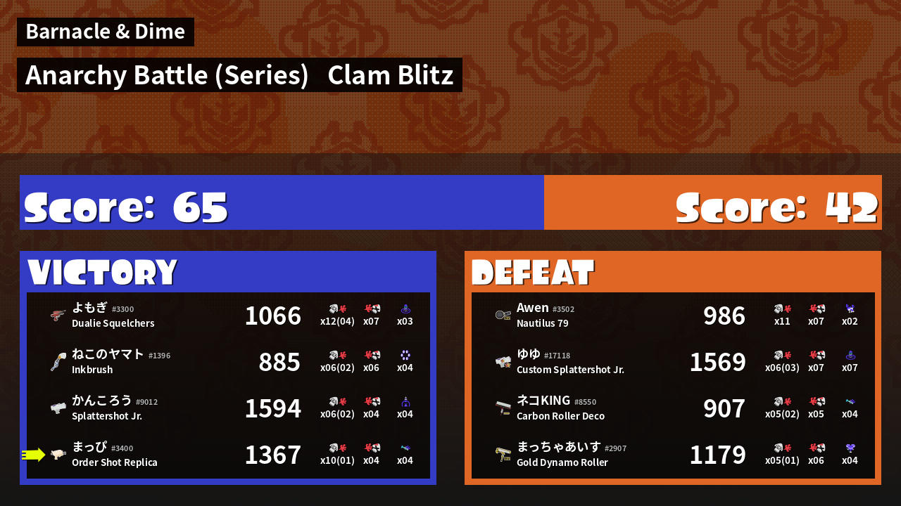 | Mode | Clam Blitz - Anarchy Battle (Series) |