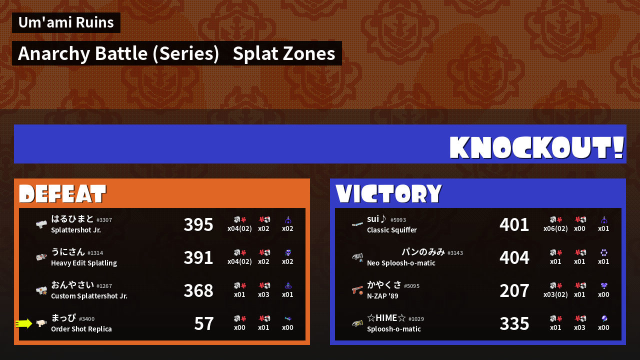 | Mode | Splat Zones - Anarchy Battle (Series) |