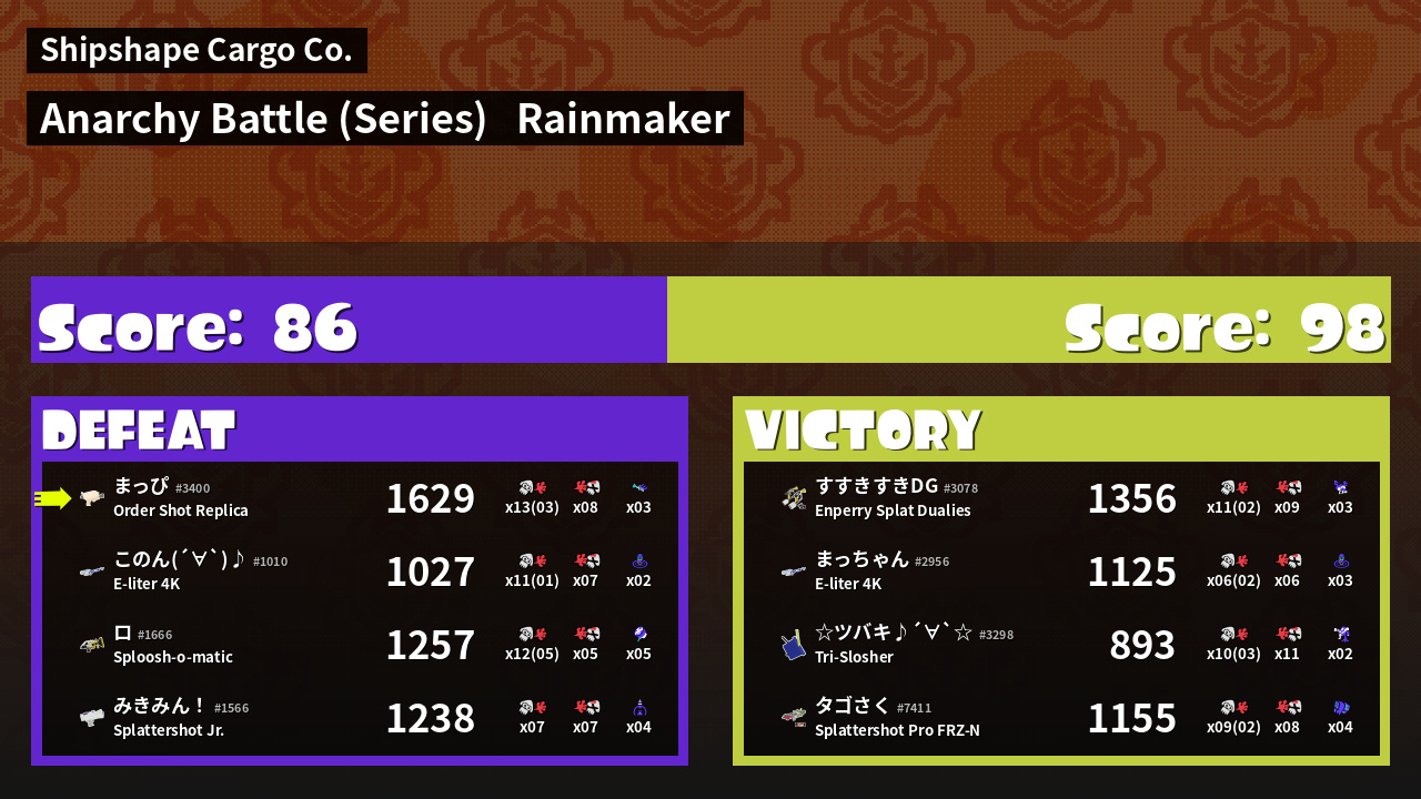 | Mode | Rainmaker - Anarchy Battle (Series) |