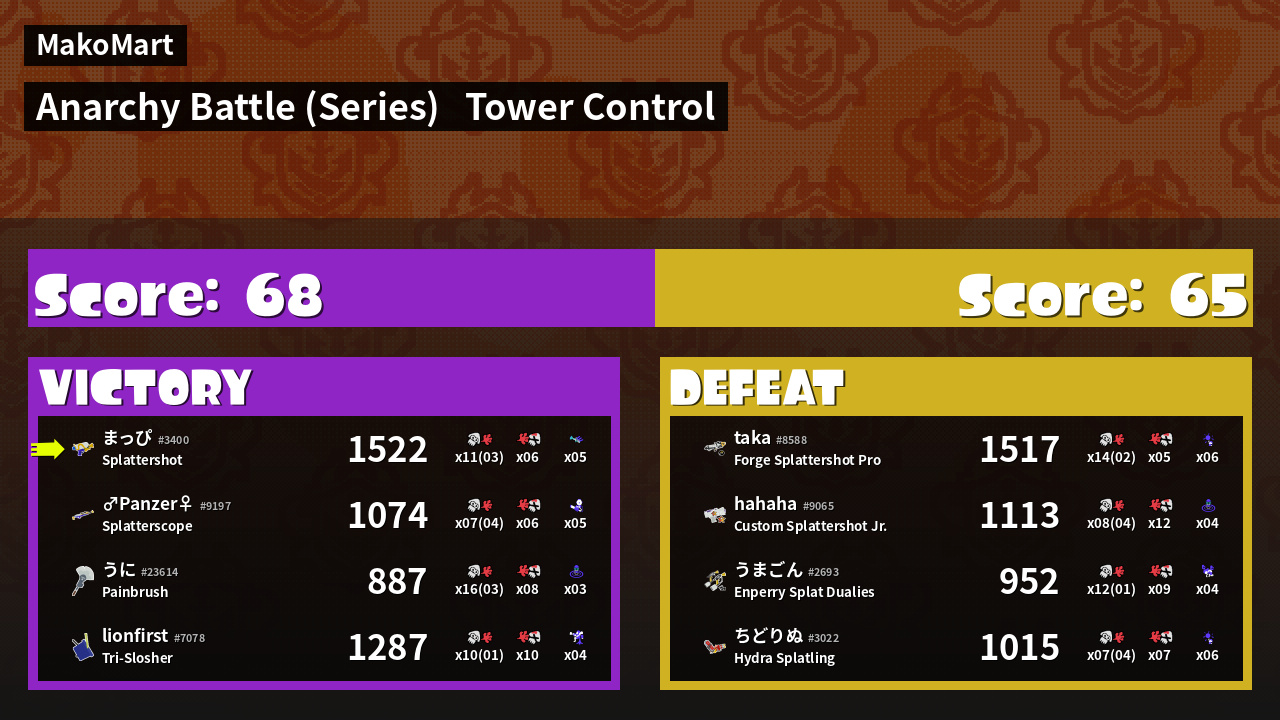 | Mode | Tower Control - Anarchy Battle (Series) |