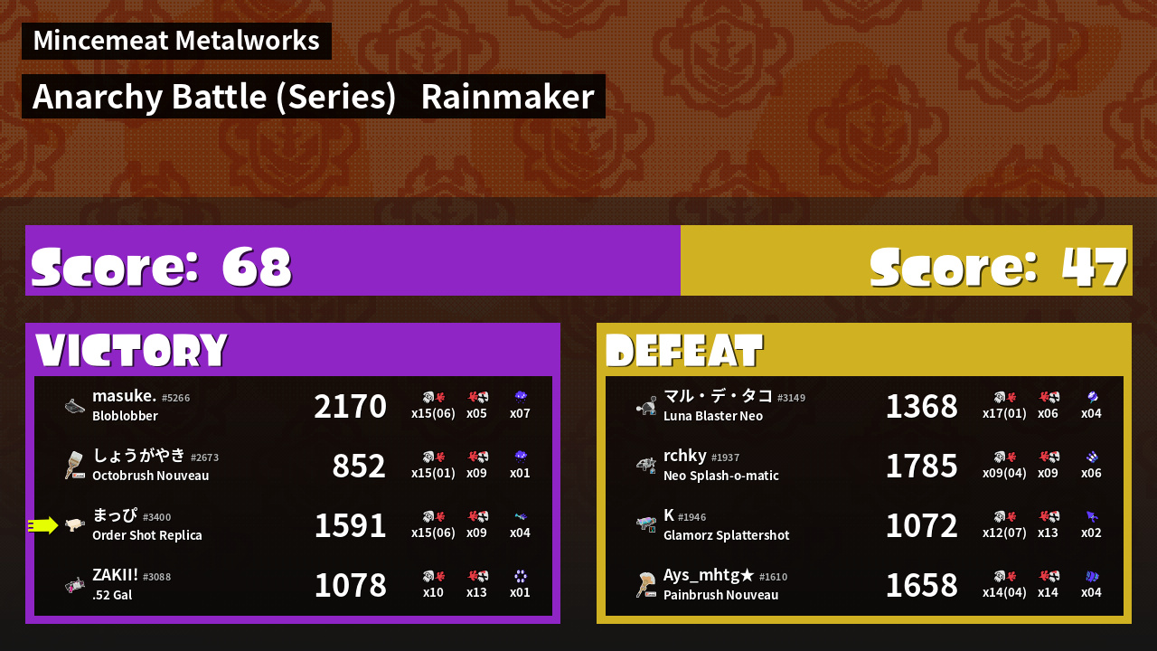 Kills / Deaths | 9 + 6 / 9 = Kill Ratio: 1.00 |