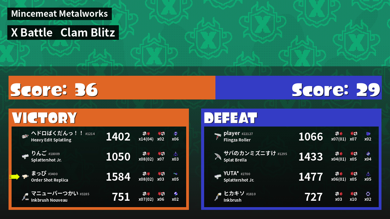 | Weapon | Order Shot Replica ( Suction Bomb / Trizooka) |