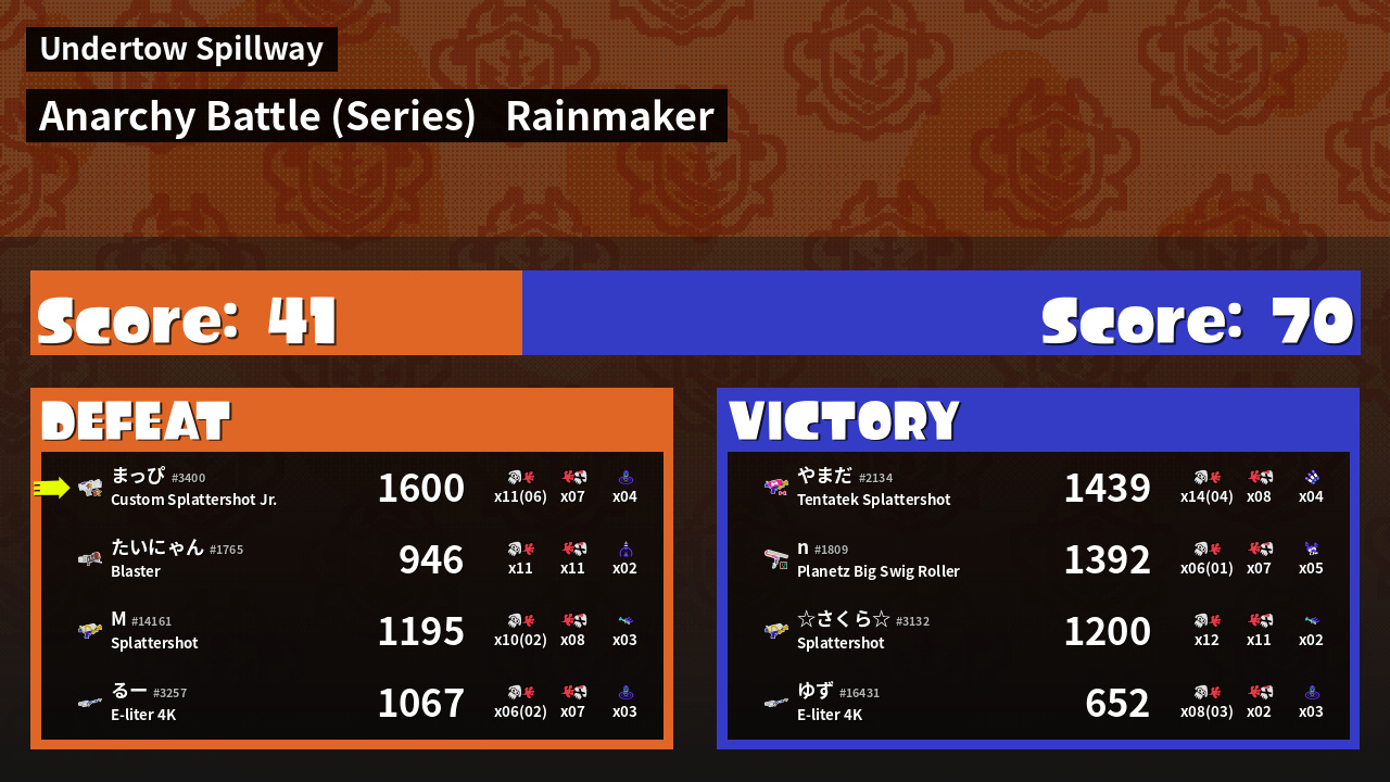 | Mode | Rainmaker - Anarchy Battle (Series) |