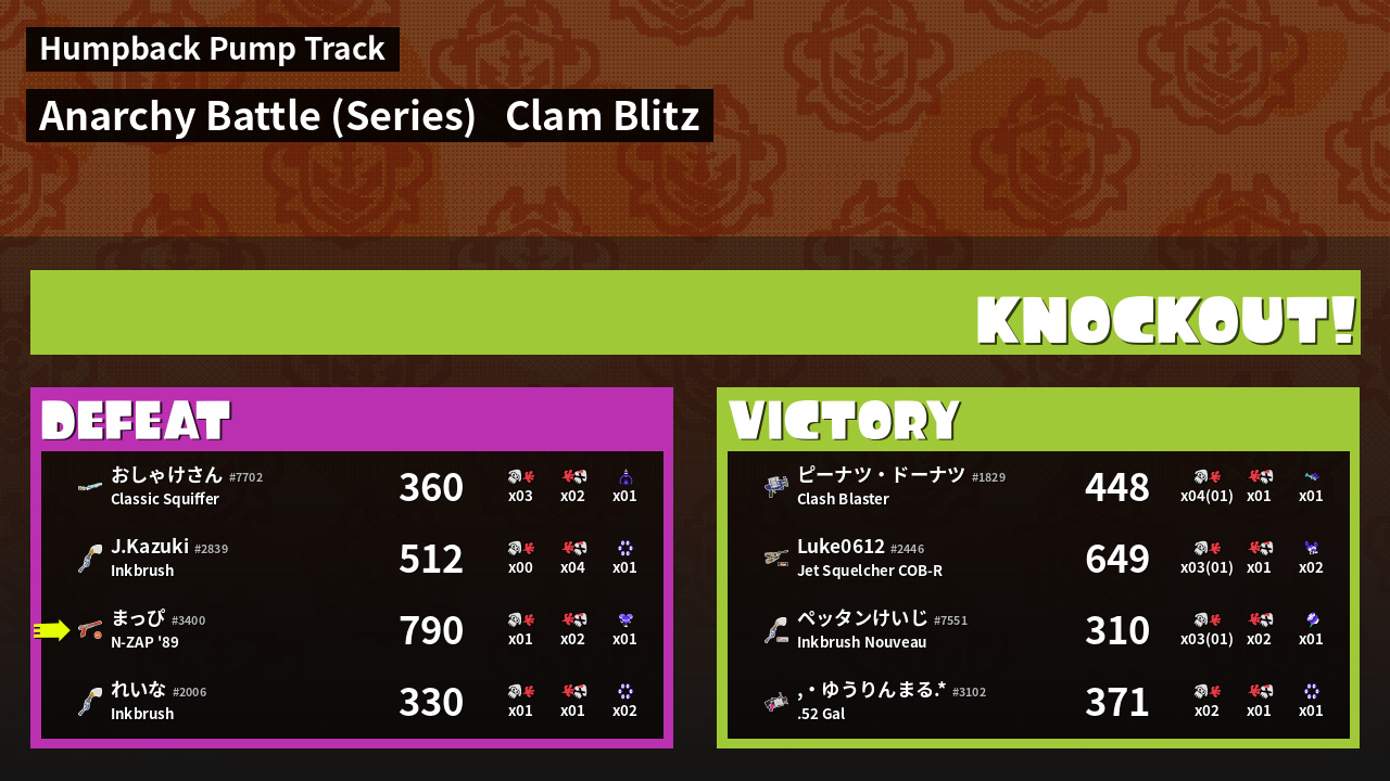 | Mode | Clam Blitz - Anarchy Battle (Series) |