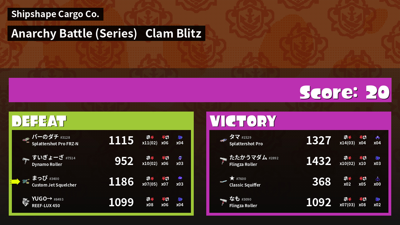 | Mode | Clam Blitz - Anarchy Battle (Series) |