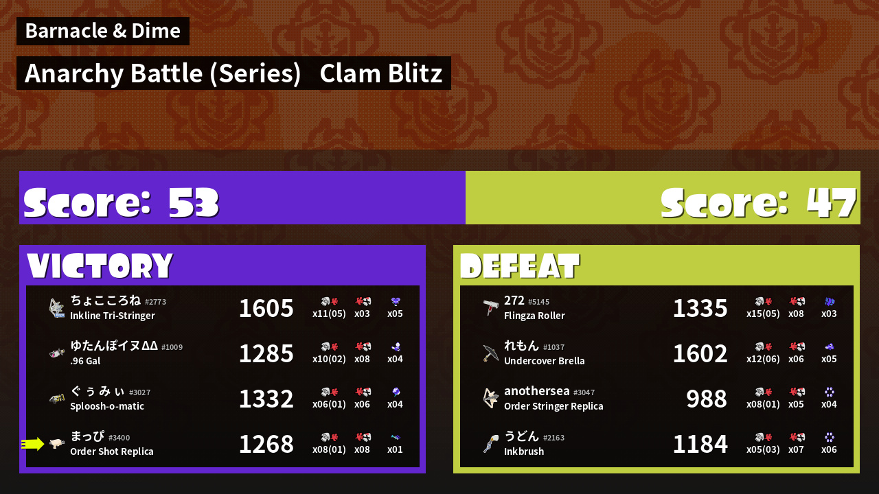 | Mode | Clam Blitz - Anarchy Battle (Series) |