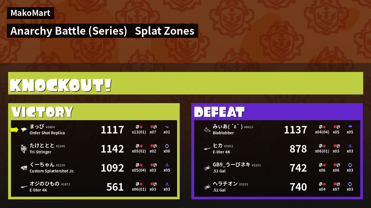 | Mode | Splat Zones - Anarchy Battle (Series) |