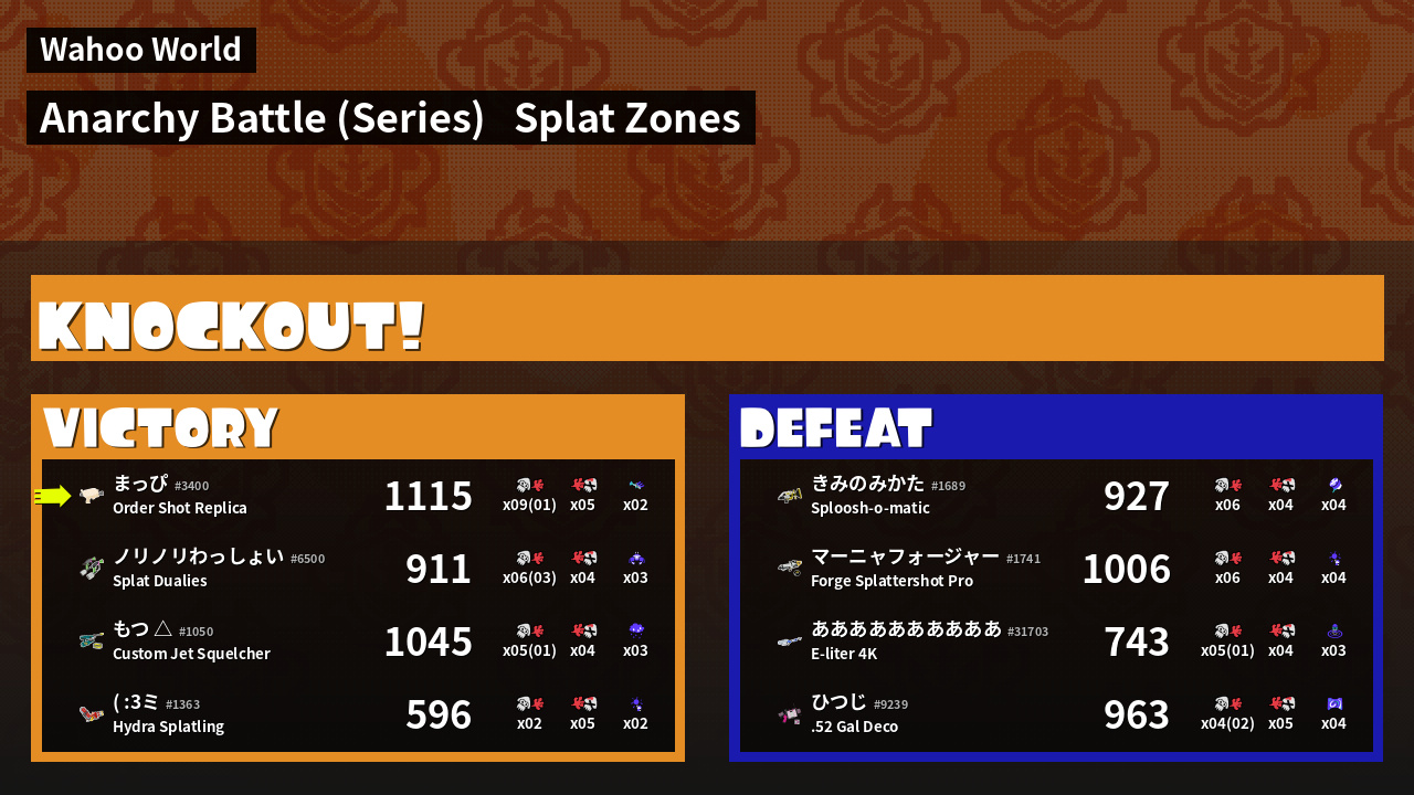 | Mode | Splat Zones - Anarchy Battle (Series) |