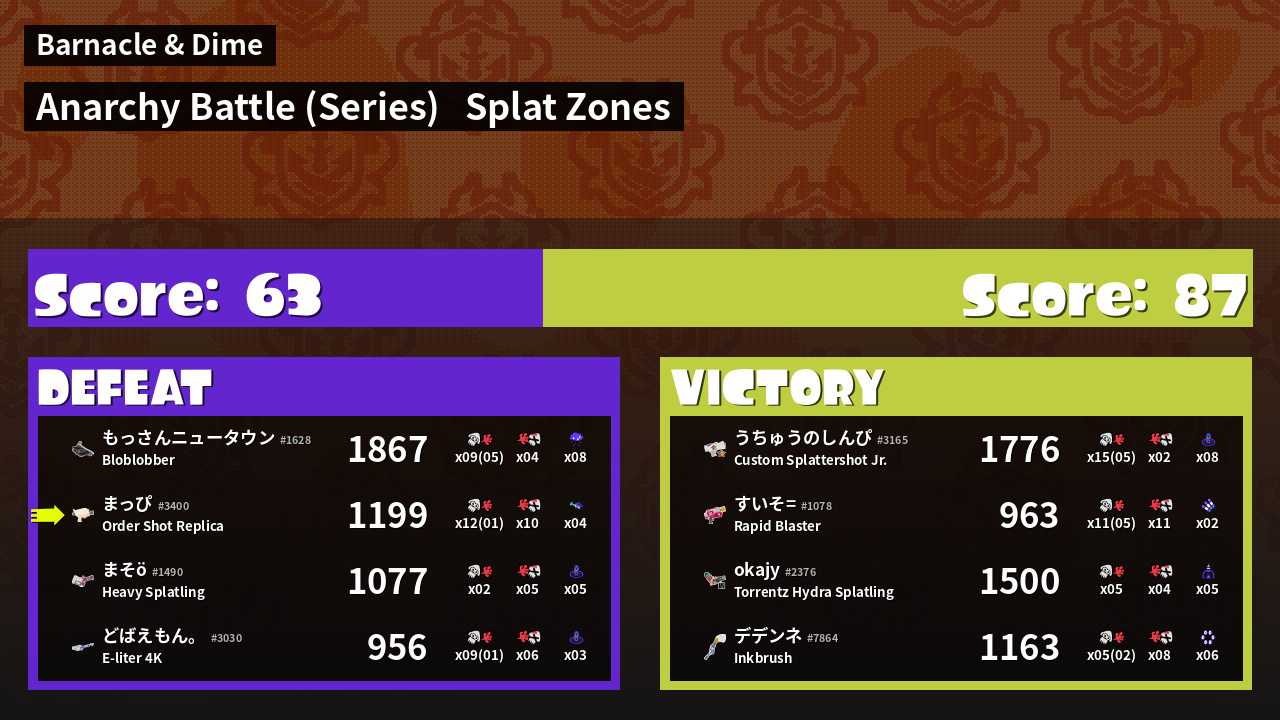 | Mode | Splat Zones - Anarchy Battle (Series) |