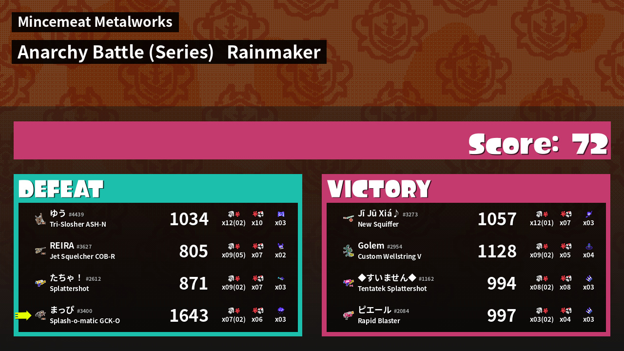 | Mode | Rainmaker - Anarchy Battle (Series) |