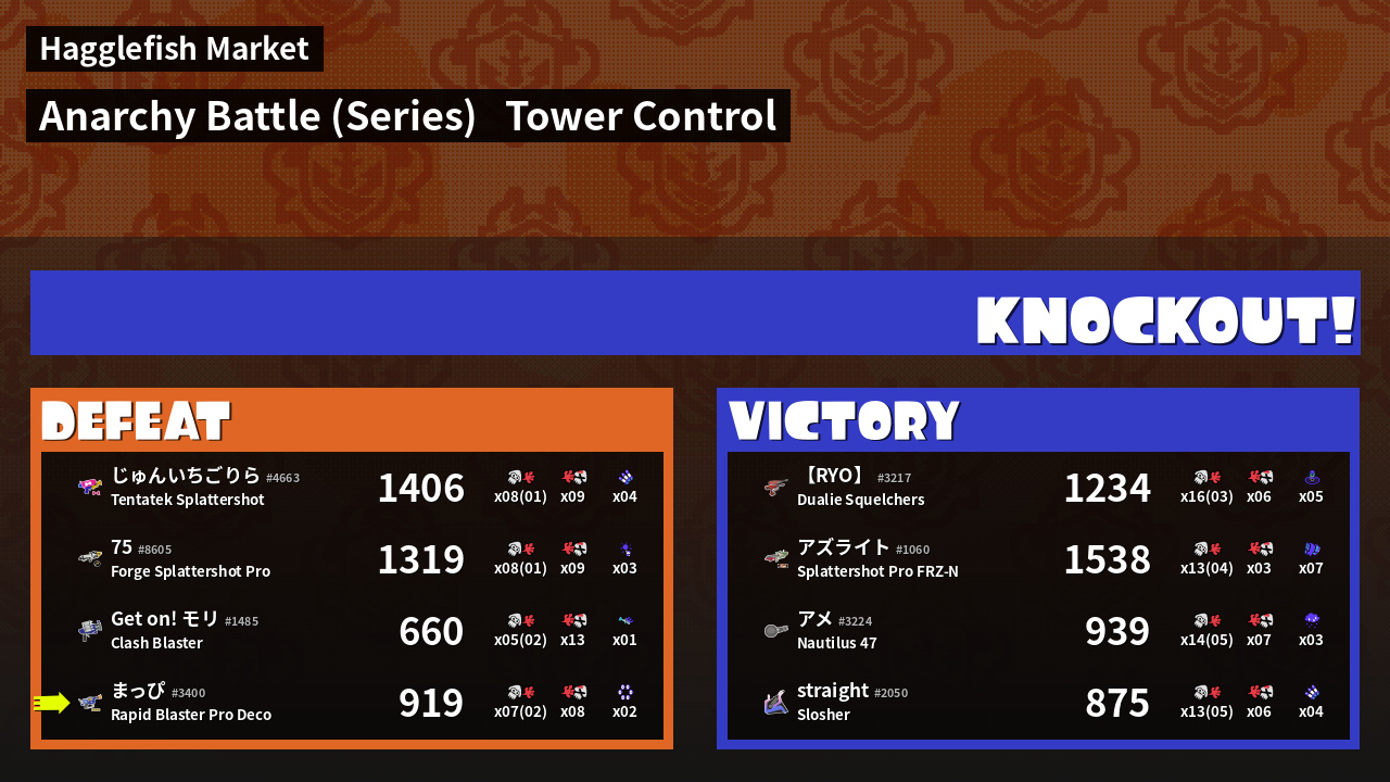 | Medals | #1 Splat Assister #1 Tower Stopper #1 Killer Wail 5.1 User |