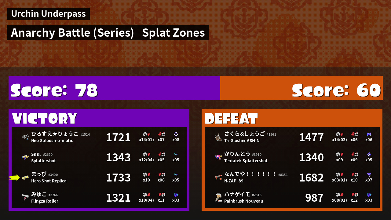 | Mode | Splat Zones - Anarchy Battle (Series) |