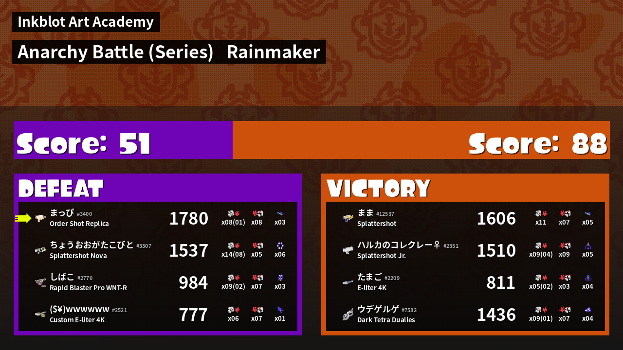 | Mode | Rainmaker - Anarchy Battle (Series) |