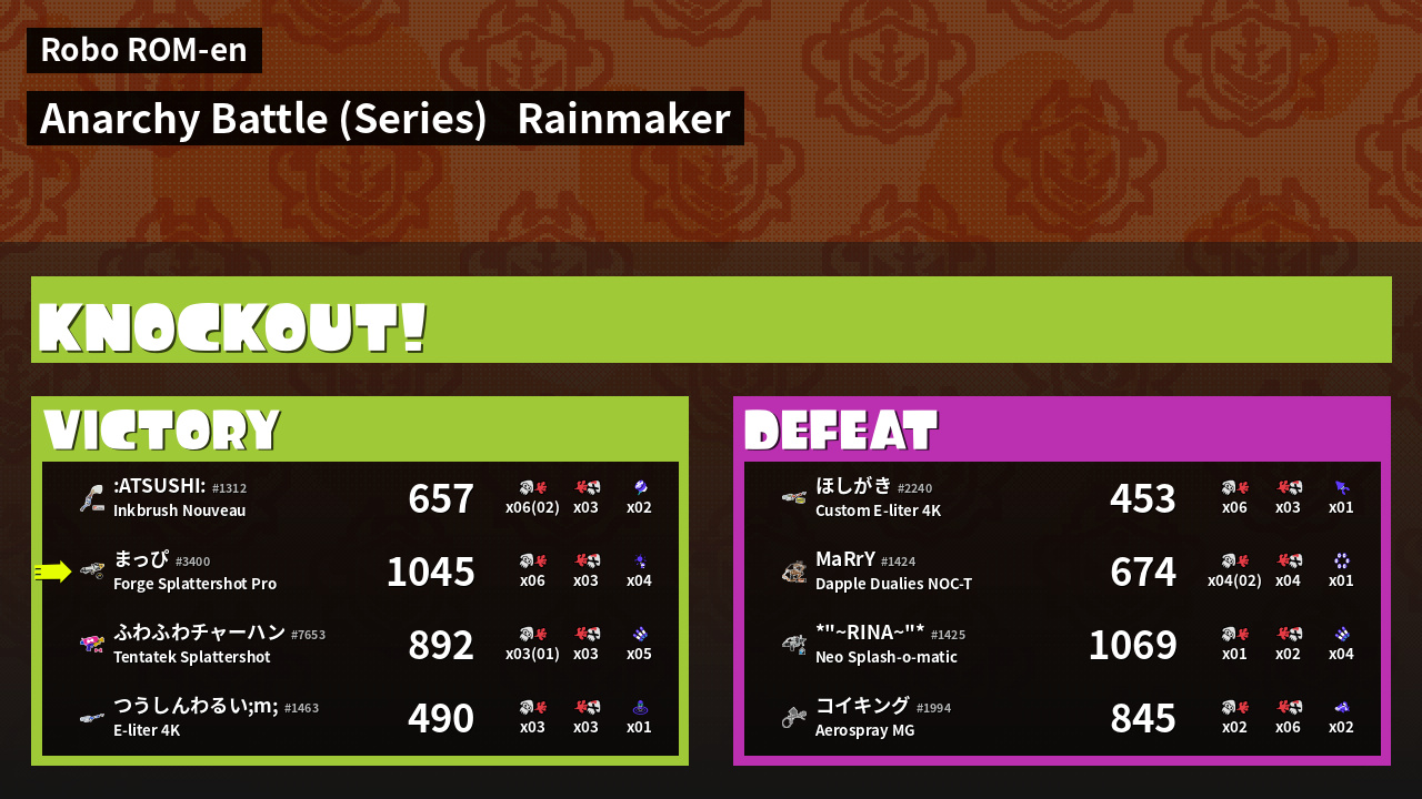 | Mode | Rainmaker - Anarchy Battle (Series) |
