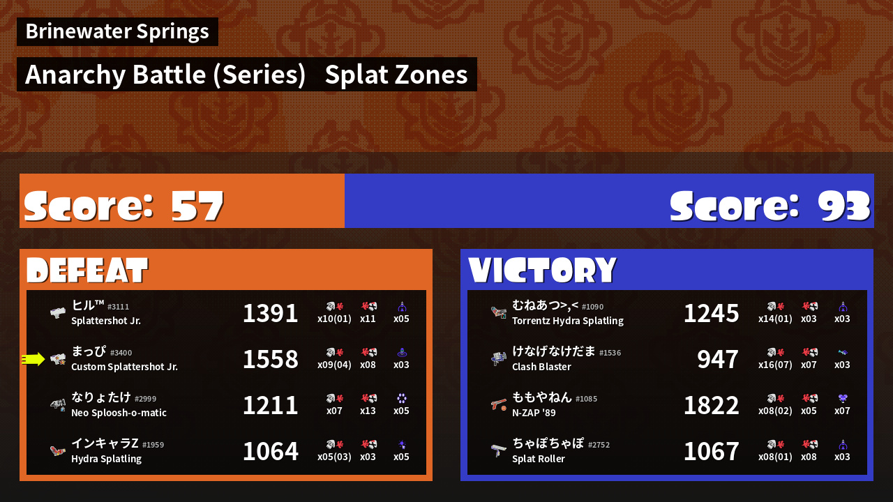 | Mode | Splat Zones - Anarchy Battle (Series) |