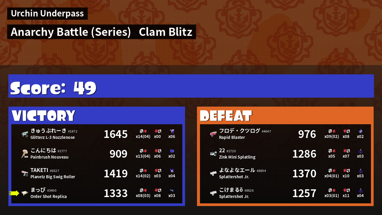 | Mode | Clam Blitz - Anarchy Battle (Series) |