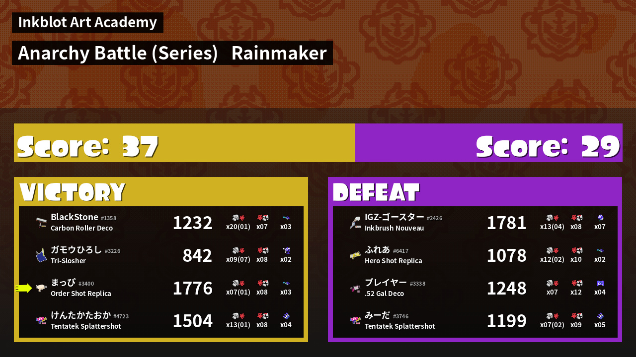 | Mode | Rainmaker - Anarchy Battle (Series) |